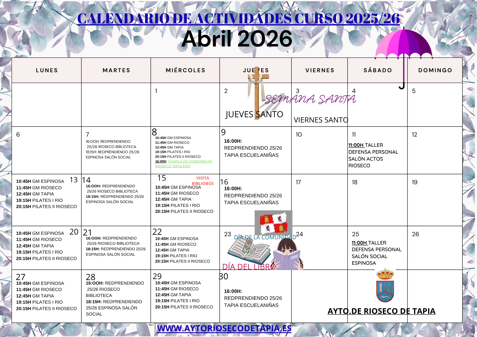 CALENDARIO DE ACTIVIDADES ABRIL 2026