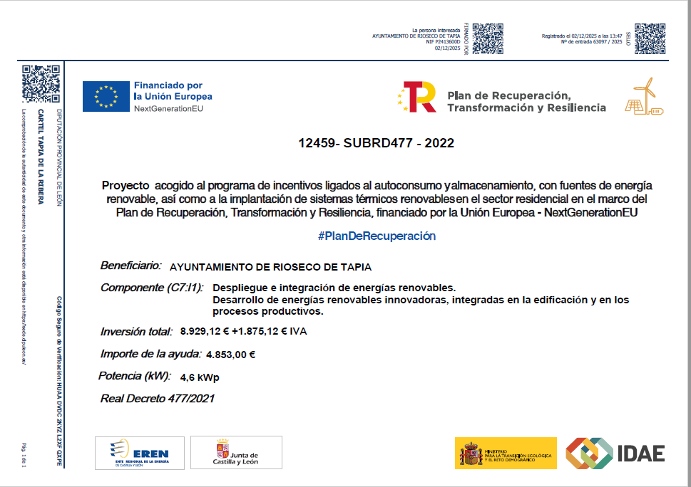 Beneficiario: Ayuntamiento de Rioseco de Tapia