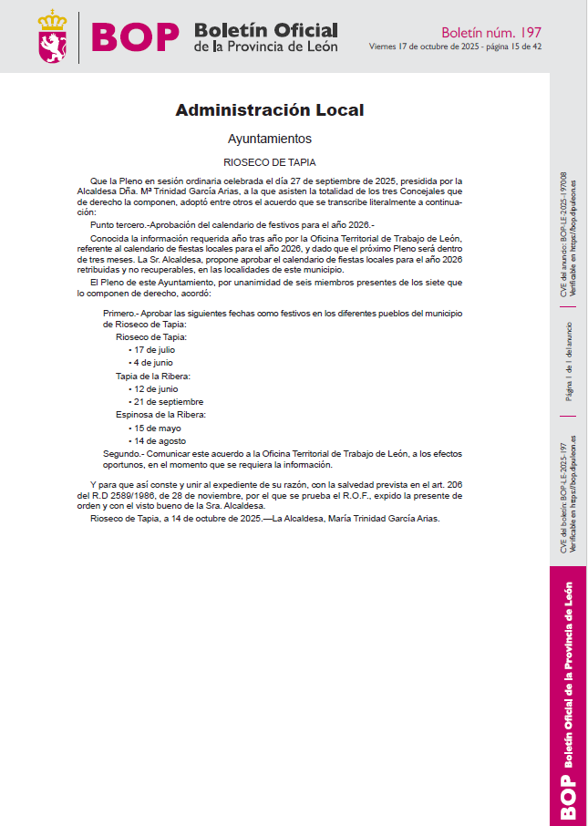 - RIOSECO: 4 DE JUNIO Y 17 DE JULIO